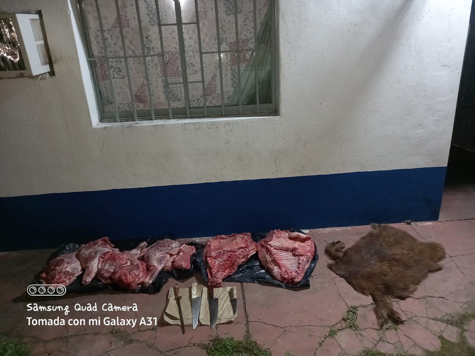 El primer allanamiento fue en un domicilio ubicado en Qta. N° 28, Mz. 3 Pc 4, donde residen J. O. de 42 años donde incautaron 60 kilos de carne porcina. Posteriormente se allanó un inmueble rural sito en Lote N° 6 El Boquerón secuestraron otros elementos relacionados con la causa. Finalmente se procedio a individualización y aprehensión del ciudadano J. O, sindicado como autor del hecho, quien previo examen médico fue alojado en Comisaria Tres Isletas.