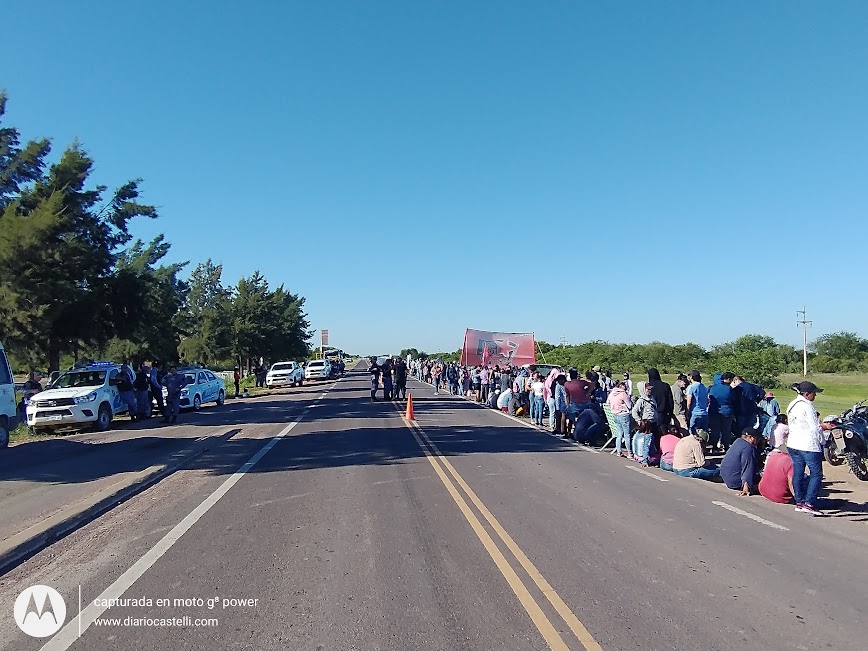 Más de 500 personas se manifestaron al costado de la ruta en Castelli