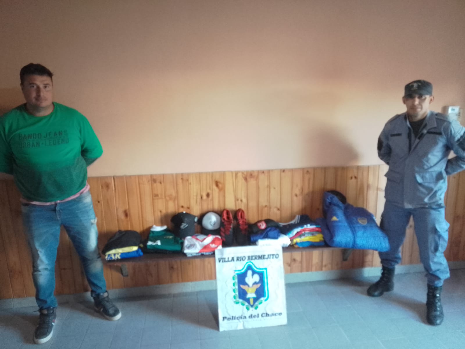 Los efectivos de la Comisaría Villa Rio Bermejito se abocaron a las tareas investigativas del caso hasta lograr el esclarecimiento este jueves por la tarde a través de un procedimiento que arrojó como resultado la conducción de cinco masculinos mayores de edad que tenían en su poder las prendas de vestir. Los elementos fueron secuestrados y restituidos al propietario del local comercial; entre ellos 8 buzos, 15 remeras, 1 campera, todos deportivos, 2 gorras y 1 par de botines de fútbol 5.