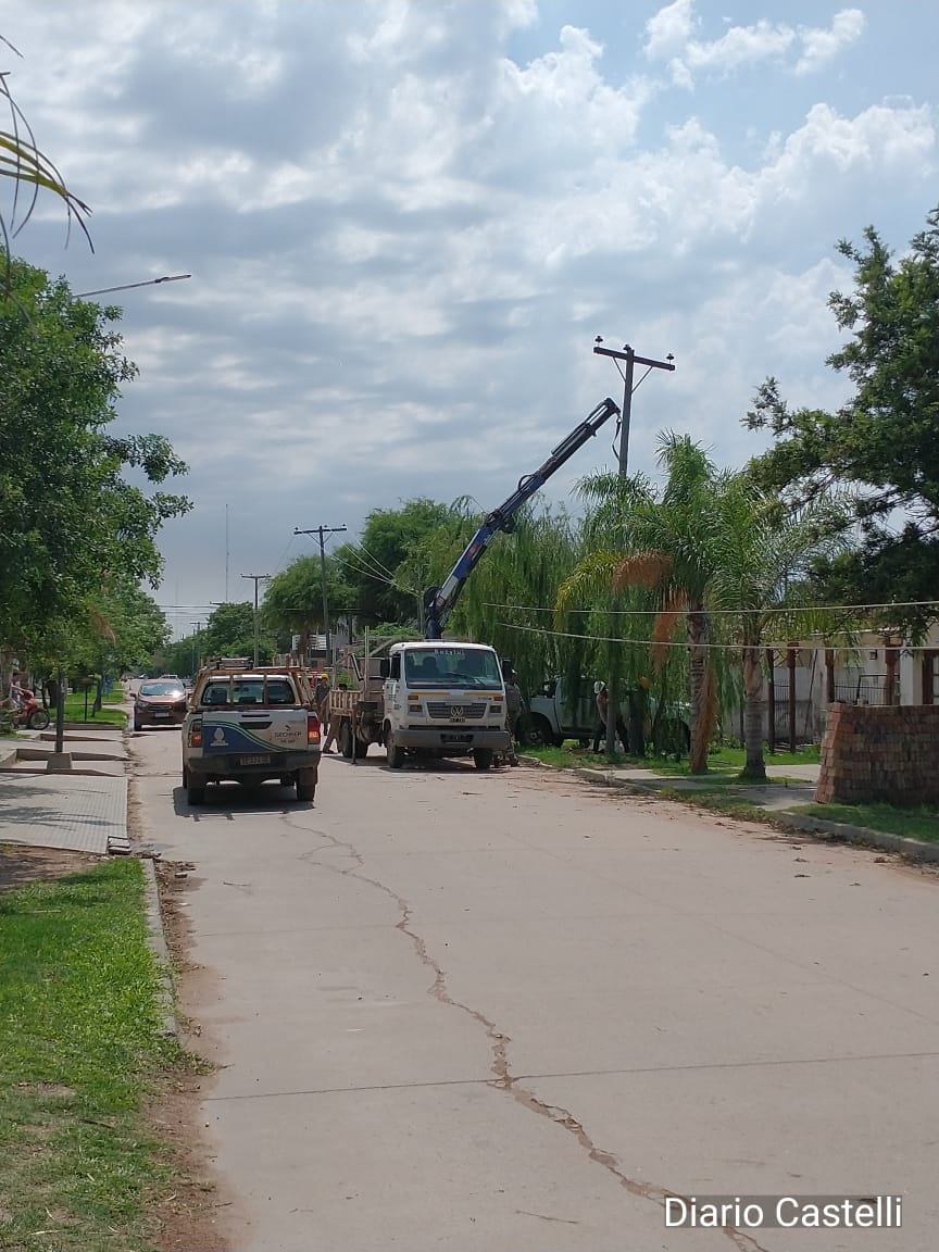 Intensas ráfagas de viento provocaron caída de postes de alta tensión en la planta urbana de Castelli durante las primeras horas de este sábado, dejando a gran parte de la ciudad sin suministro eléctrico durante varias horas.