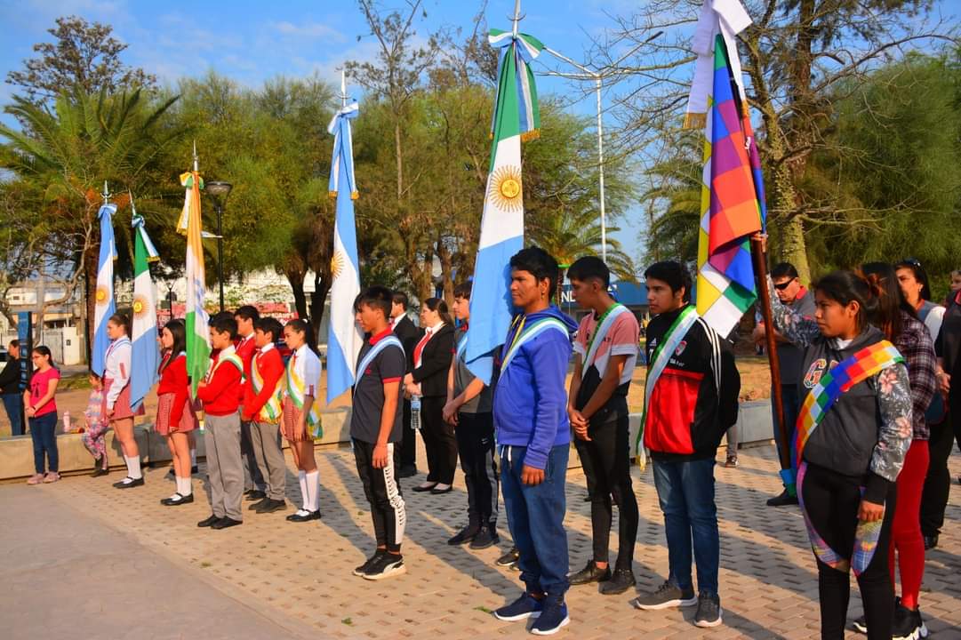 La ceremonia comenzó con el izamiento de banderas y la interpretación del Himno Nacional Argentino a cargo de los alumnos de la escuela de música «Memoria de mi Patria», dirigidos por el profesor Alejandro Toloza y con las voces de Juan Bordón y Vanina Perramón. La presidenta del Concejo Deliberante Soledad Rach hizo entrega la declaración N° 038/23.