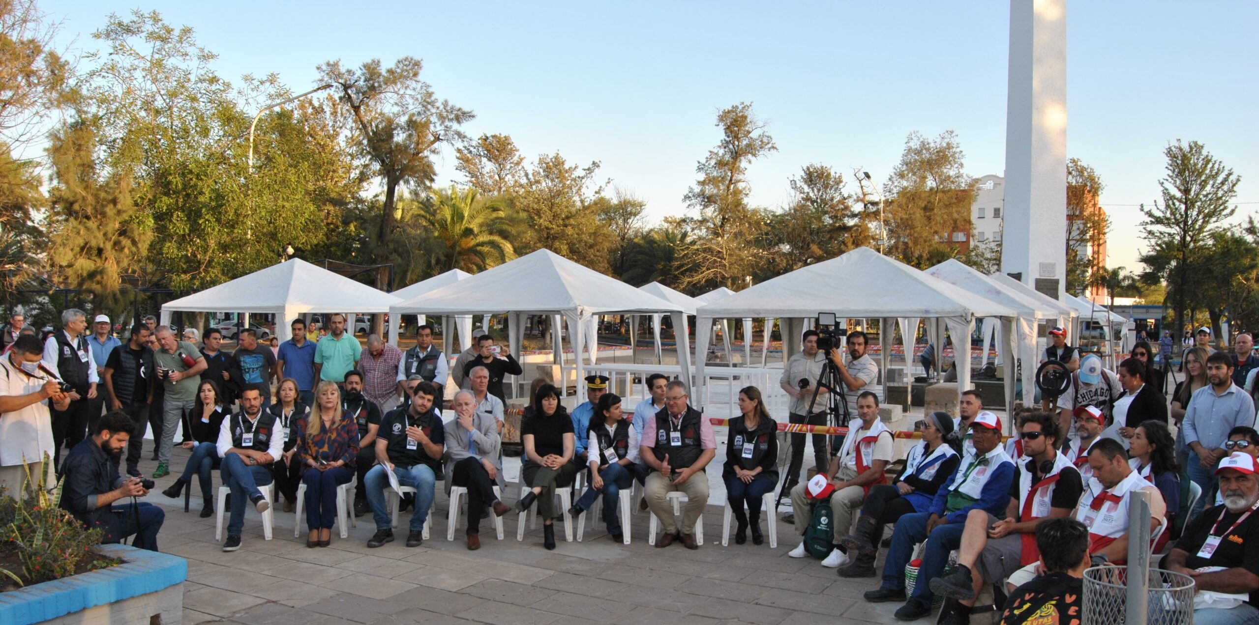 La ceremonia de apertura y presentación formal de los escultores se realizó a las 8 de la mañana con la presencia del Intendente Pio Sander, de la Vicegobernadora Analía Rach Quiroga y del presidente de la  fundación Amigos del Arte y Turismo, René Beretolucci,  que forman parte del comité organizador del evento.