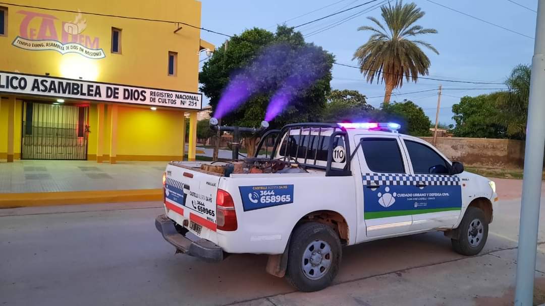 En una acción coordinada entre el Ministerio de Salud de la Provincia, el área de Vectores de la Zona Sanitaria V, la Municipalidad de Juan José Castelli y la Patrulla de Cuidado Urbano y Defensa Civil, se retomaron las tareas de fumigación en distintos sectores de la ciudad desde tempranas horas.