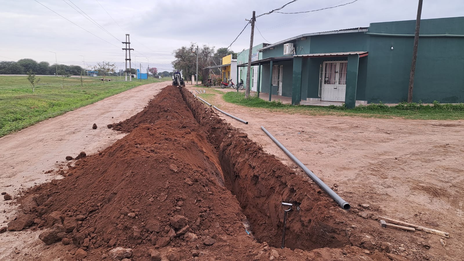 La Cooperativa Antonio Portillo trabaja con la colocación de cañerías de la nueva red domiciliaria de agua potable en la vecina localidad de Zaparinqui.