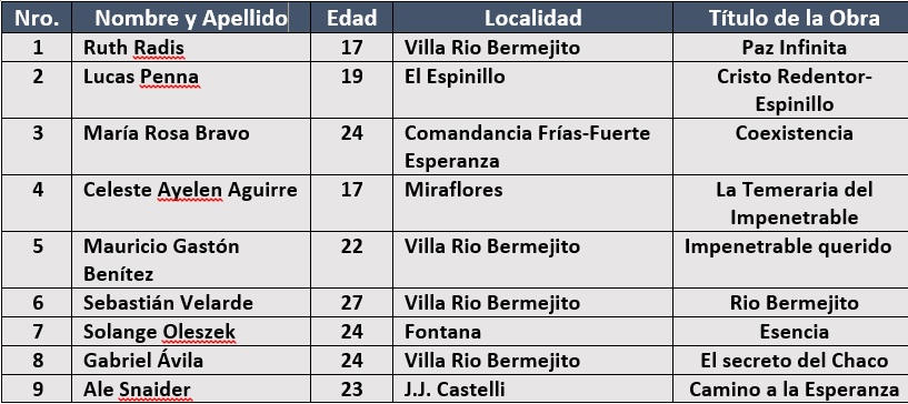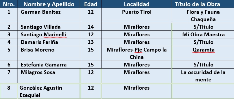 El certamen virtual coordinado por el escultor Héctor Zimmer, se llevó a cabo desde el 12 al 16 de julio y contó con la participación de jóvenes y adolescentes de distintas localidades que mostraron su arte, reflejando distintos lugares y situaciones que se viven en el Impenetrable chaqueño.