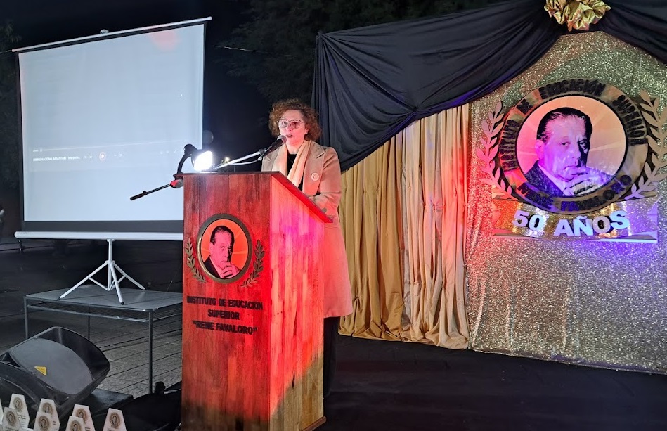 También relató la legada en tren del profesor Orlando Silva, otro pilar fundamental en la historia institucional, y recordó los consejos y enseñanzas de la profesora Ada Rodríguez de Riese. Finalmente, destacó el enorme crecimiento del instituto a lo largo de las 5 décadas y aseguró que «de la mano de la educación hay esperanzas de una mejor calidad de vida».