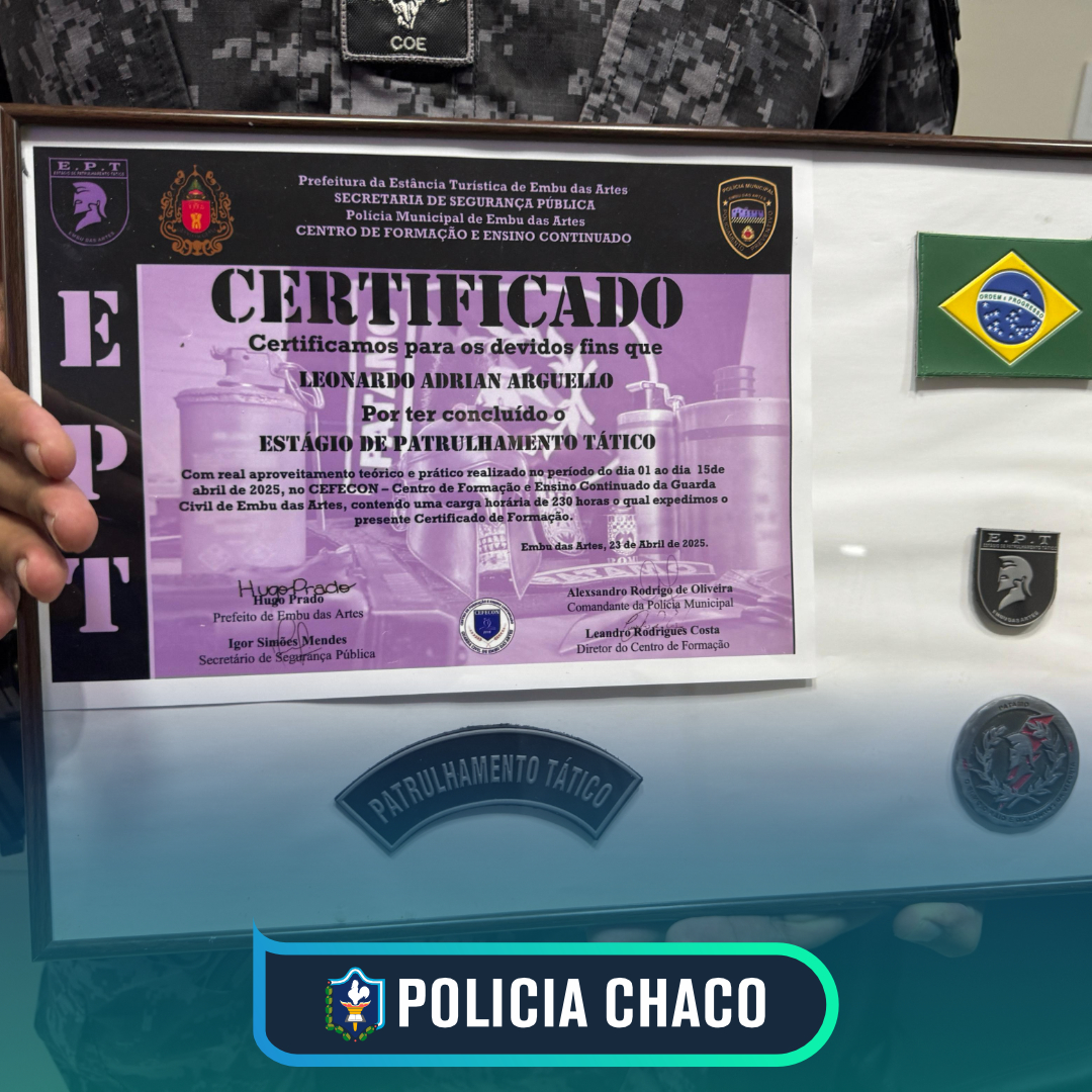 El Oficial Principal Leonardo Adrián Arguello, perteneciente al Departamento 911 Interior de Juan José Castelli, participó del 10° Curso de Patrulla Táctica Motorizada en Embu das Artes, Brasil .