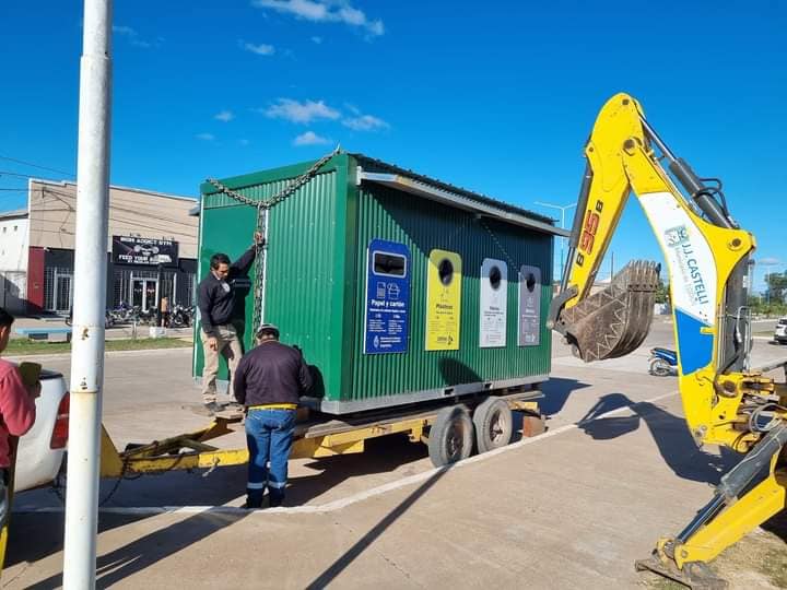 El secretario de Ambiente Enzo Ferrari junto al operarios de servicios Públicos procedieron a la reubicacion de este modulo y señalo «Ahora el punto verde Estacionario tendrá ubicación definitiva, ese lugar será sobre la vereda del Pulmón Verde, por la Avenida. Güemes, entre las calle Mitre y Sáenz Peña.
