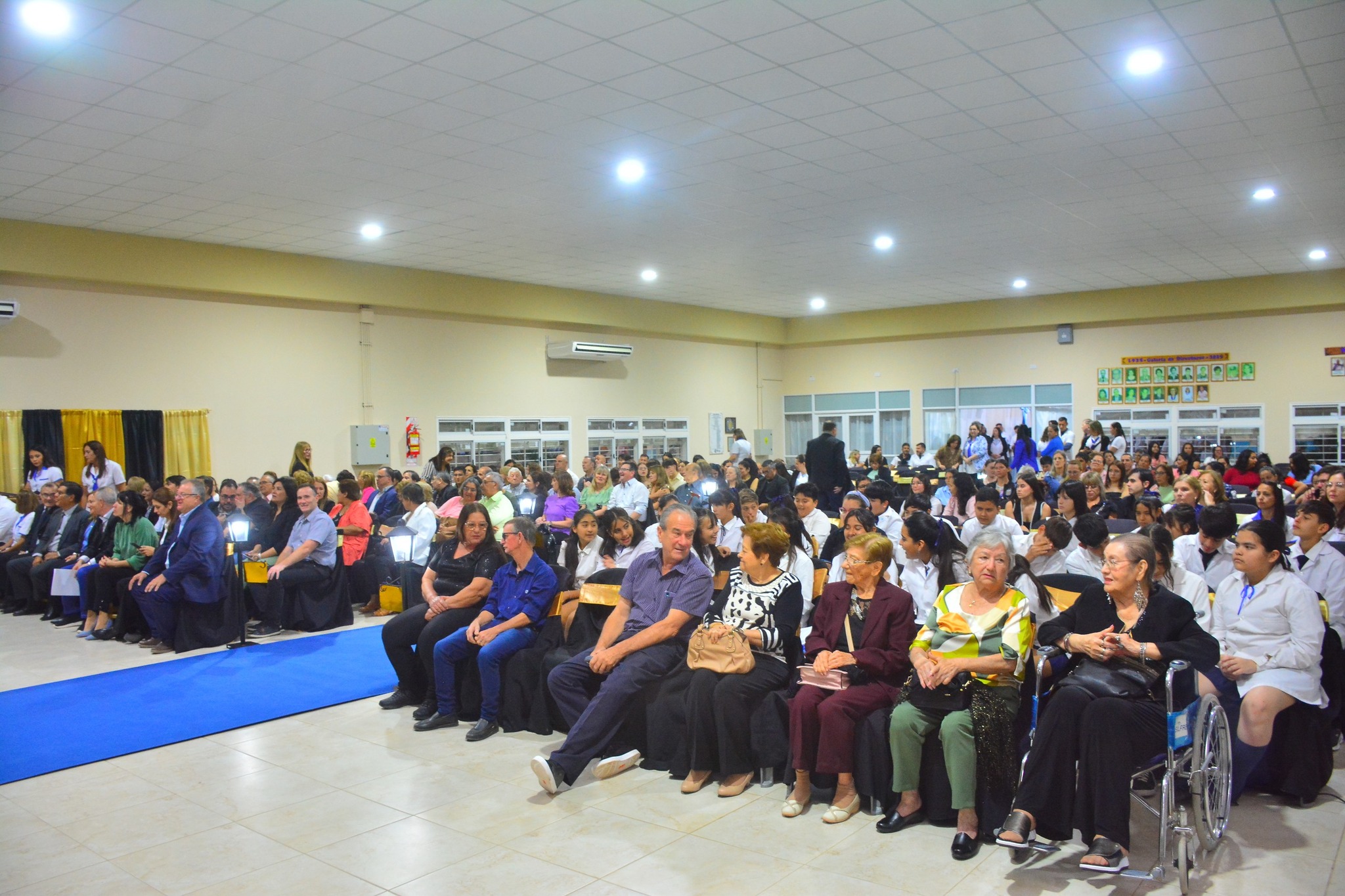 El emotivo acto se desarrolló en el salón de la escuela, con la cálida bienvenida de su directora Fabiana Ponce, y contó con la presencia de autoridades provinciales y locales, entre ellas el diputado Juan José Bergia, la Presidenta del Concejo Deliberante Soledad Rach, el Secretario de Gobierno Ismael Pablo Barnes, los Concejales Cinthya Frías, Franco Tiberio y Adrián Bordón y la Intendenta de Fuerte Esperanza Inés Ortega; además de autoridades eclesiásticas, docentes que pasaron por esa casa de estudio y quienes acompañaron este acontecimiento tan especial.