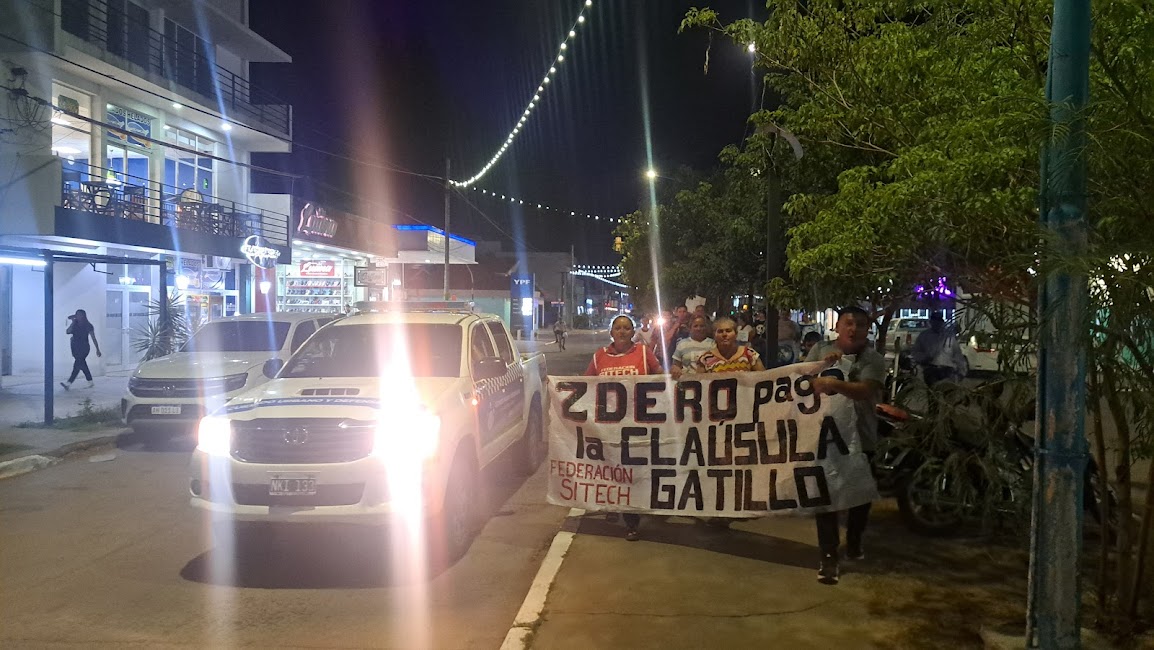 La columna de manifestantes partió desde la plaza San Martín y se desplazó por tres cuadras por el bulevar de la avenida principal, para retornar hacia el lugar de partida. Posteriormente, se escucharon fuertes discursos de representantes gremiales que cuestionaron el incremento del 3% anunciado por el gobierno.