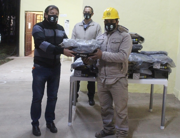 El Presidente de la entidad, Daniel Agustín Deztel, hace entrega de indumentaria al personal de planta, en el marco del acuerdo colectivo de trabajo.