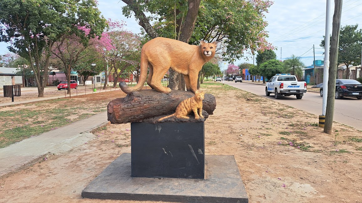 Fue la primera obra emplazada en el acceso a la avenida principal, una yaguareté con su cría