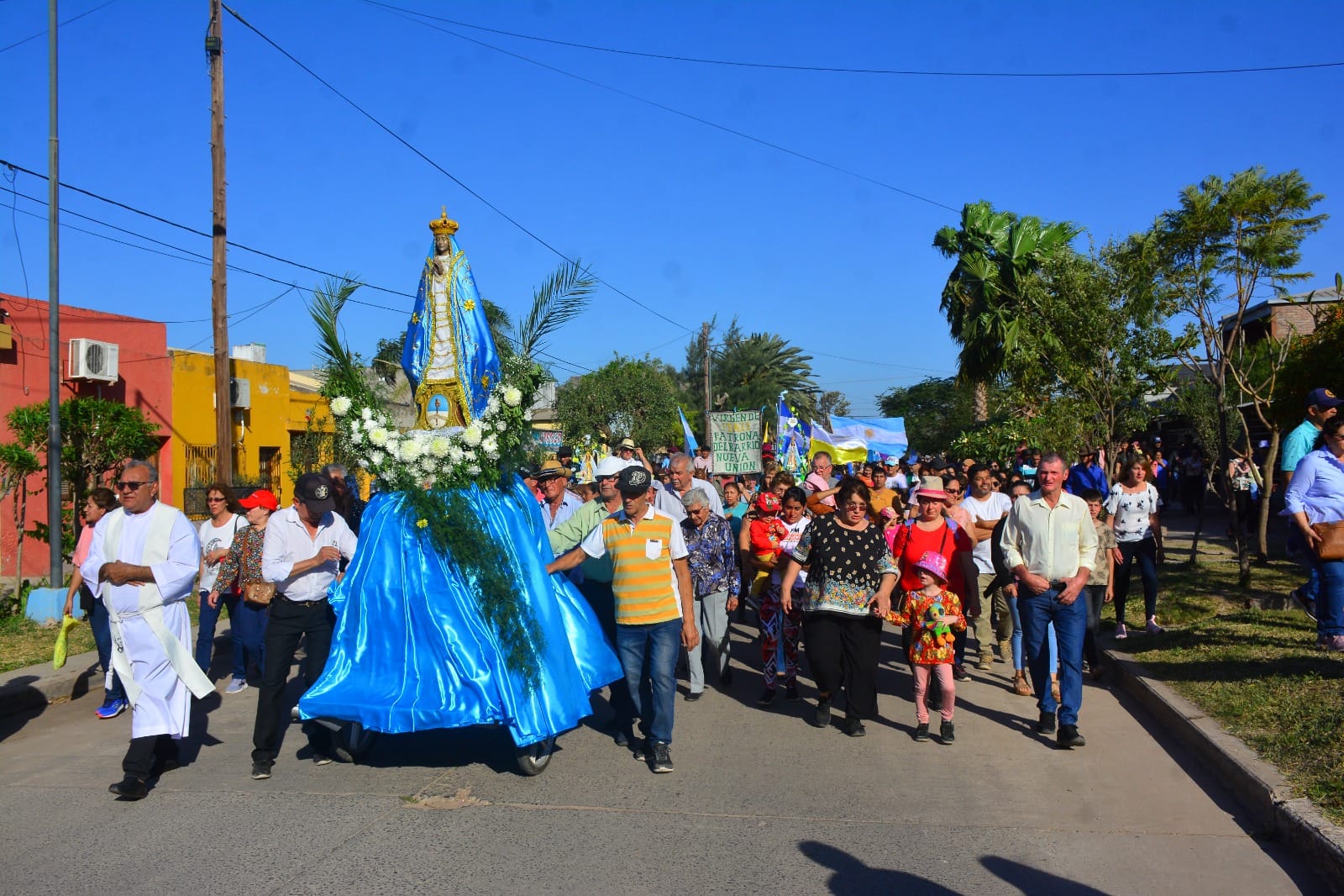 Desde las 16:00 hora frente a la iglesia central, dio el inicio a la procesión, donde participaron jinetes de diferente parajes que vinieron en procesión de varios kilómetros, a su paso se fueron sumando feligreses, alumnos de distintas instituciones , al final del recorrido el obispo Monseñor Hugo Barbaro junto al Párroco Osvaldo Santillan ofrecieron la misa a los presentes.