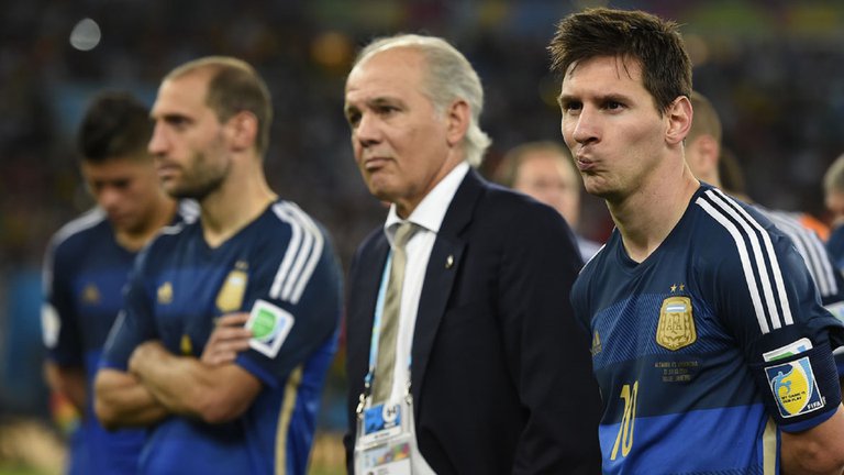 Sin embargo, el equipo no pudo repetir el mismo rendimiento en el Mundial, debido a las lesiones, como la de Agüero, o la de Di María antes de la final, pese a lo cual, pudo estar cerca del título en el Maracaná, ante Alemania, cuando Higuaín Rodrigo Palacio desperdiciaron claras situaciones de gol antes de caer en tiempo suplementario, cuando ya el estado físico no era el mismo ante un rival que no se había desgastado en semifinales durante la impactante goleada de 7-1 a los locales.