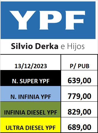 Los nuevos precios de YPF en Castelli, que ya rigen desde el 13 de diciembre