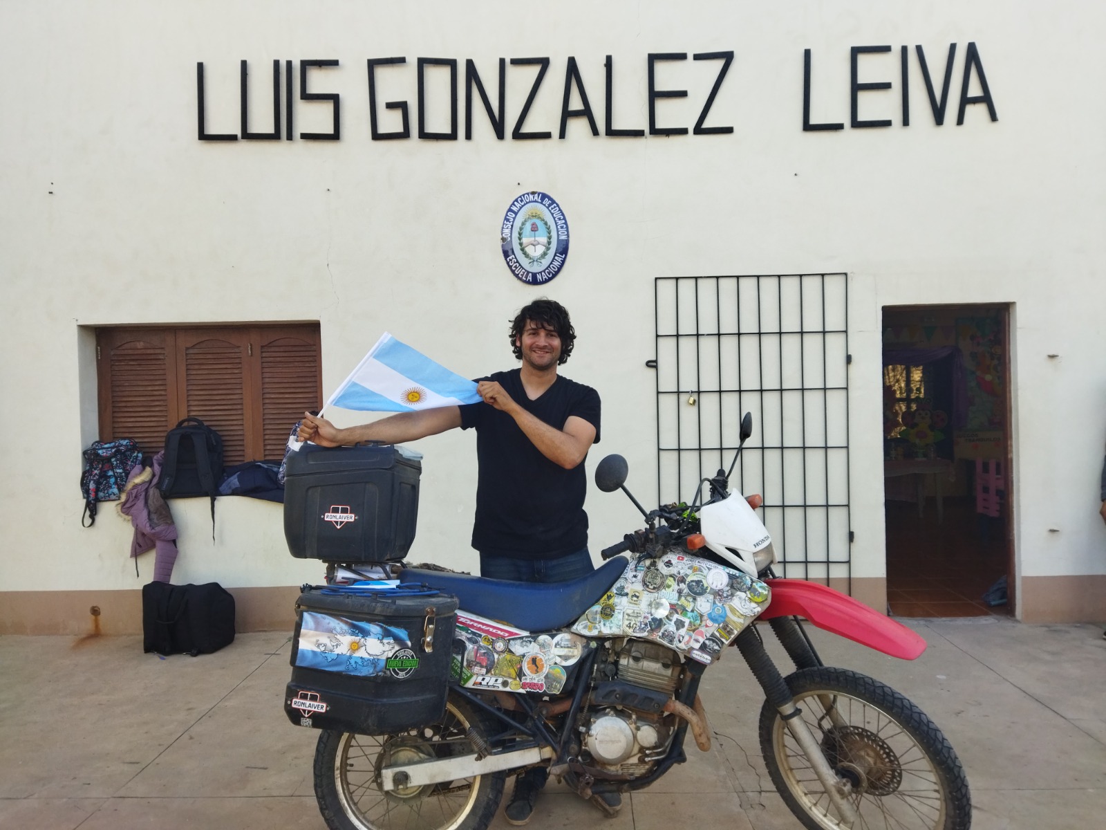 Conmovido, prometió llevarla en su motocicleta como símbolo de nuestra identidad y recuerdo de la calidez recibida, portando así un pedacito de nuestra patria en su travesía por el mundo.