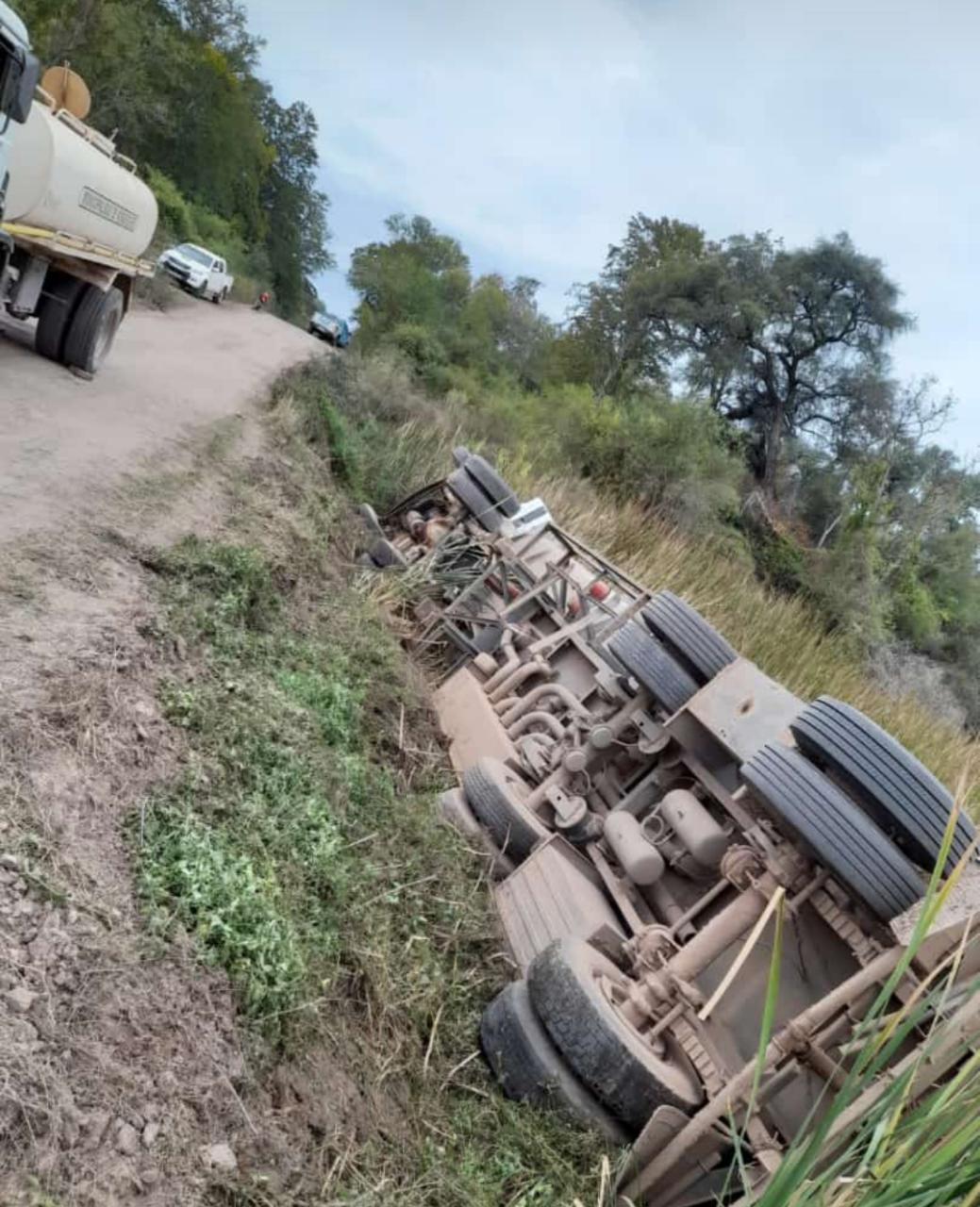Por razones que aún se tratan de establecer, esta tarde ocurrió un accidente en el norte chaqueño, aunque no hubo que lamentar víctimas de gravedad. El hecho sucedió antes de las 19, en el Paraje El Caimán de Miraflores, donde un camión con cisterna –con capacidad para 34.000 litros de agua- volcó sobre un barranco.