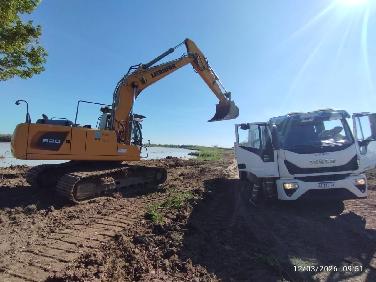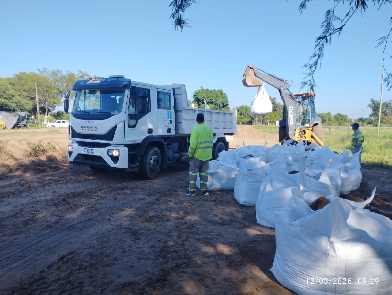 Las tareas comprenden la colocación de big bags (contenedores flexibles) rellenos con suelo, a fin de reforzar la estabilidad del sector ante las condiciones hidrológicas del río, junto con trabajos de limpieza y desmonte en zona de camino.