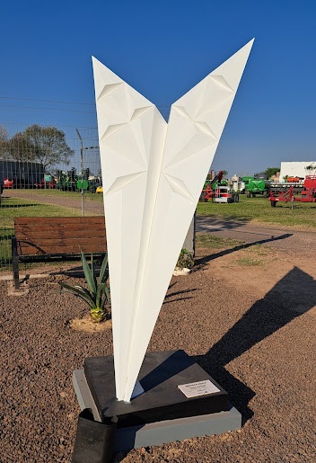 También emplazó una obra frente a la UEGP 111, Pía Didoménico y otra en el acceso principal a Castelli frente a una empresa local que resultó favorecida por el sorteo entre los auspiciantes de la Bienal 2024.