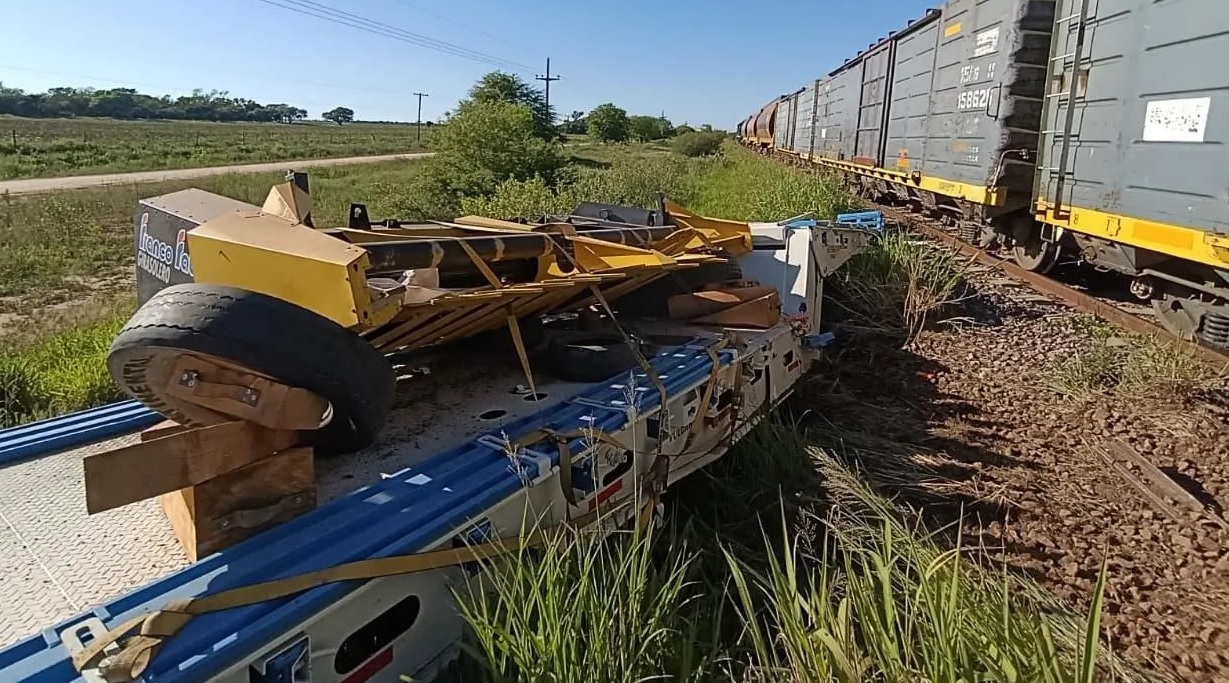 El incidente ocurrió este domingo por la mañana en el paso a nivel «Chito», a tres kilómetros del casco urbano. No hubo personas heridas y sólo se registraron daños materiales.