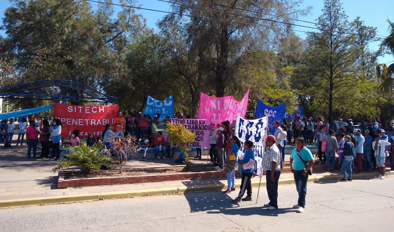 Durante la mañana del lunes, se realizó una multitudinaria marcha por la avenida principal de Castelli, con la participación de mujeres trabajadoras de distintos sectores de la sociedad, entre ellas de la educación, de salud pública, trabajadoras sociales; con el acompañamiento de organizaciones sociales, gremios docentes, agrupaciones de padres y organizaciones barriales.