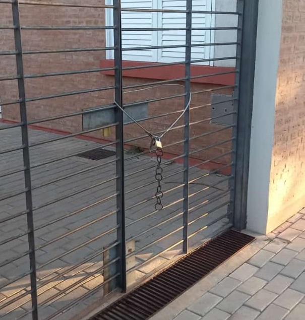 Los manifestantes bloquearon el ingreso  principal al edificio colocándole candado al portón   y los empleados no pudieron  entrar para cumplir con sus tareas cotidianas.