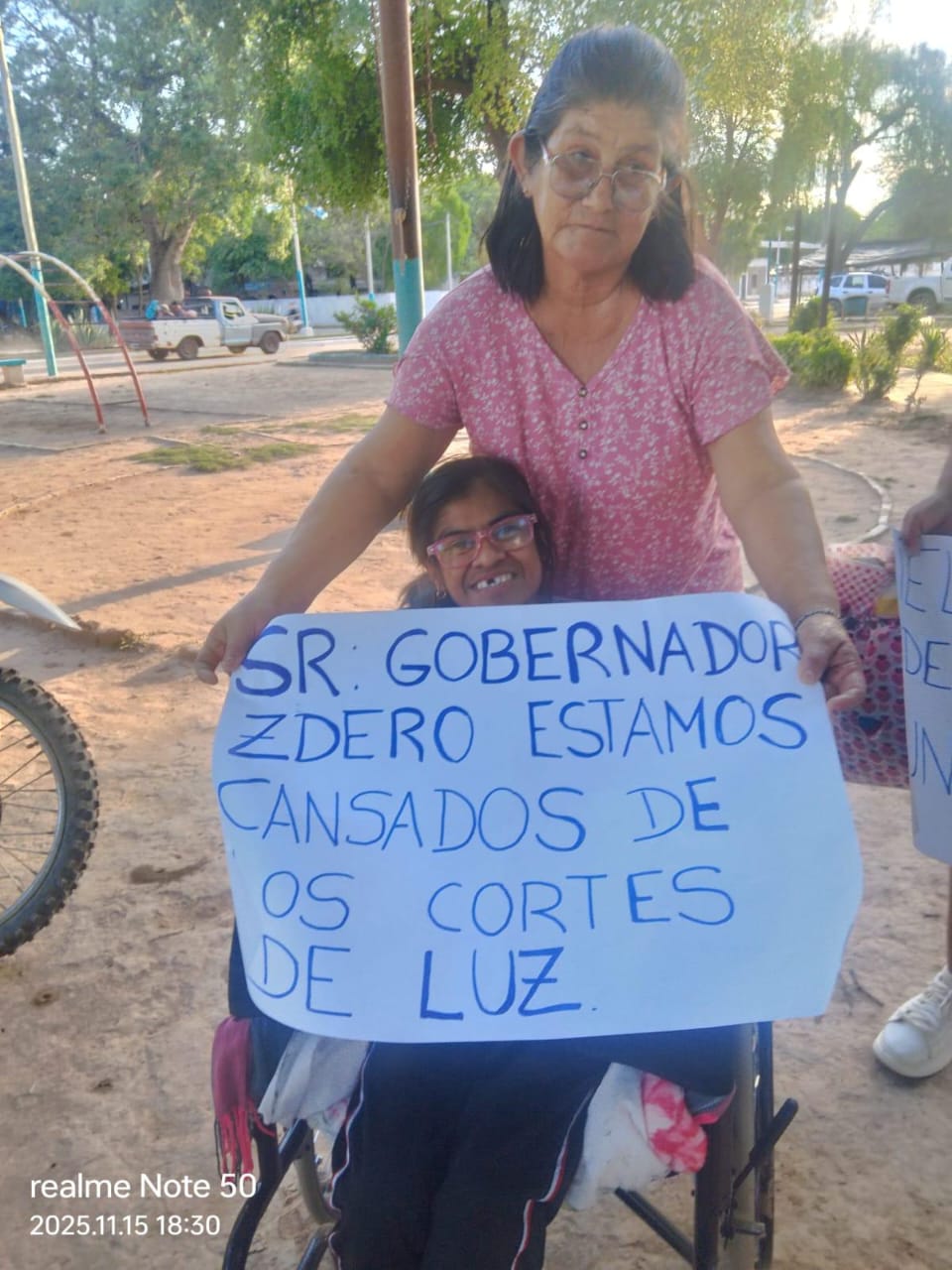 Vecinos de la localidad de El Sauzalito se concentraron con carteles para expresar su malestar por el deficiente servicio eléctrico que reciben, y pedirle al gobernador Leandro Zdero una solución urgente.